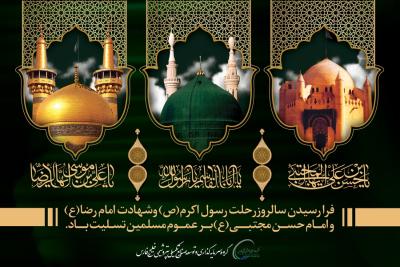 فرا رسیدن سالروز رحلت رسول اکرم (ص) و شهادت امام رضا (ع) و امام حسن مجتبی (ع) تسلیت باد