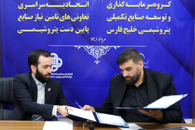 تفاهم نامه همکاری فی ما بین گروه سرمایهگذاری و توسعه صنایع تکمیلی پتروشیمی خلیجفارس و اتحادیه سراسری تعاونی های تأمین نیاز صنایع پایین دست پتروشیمی