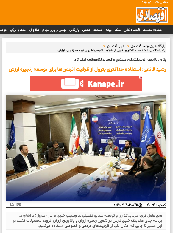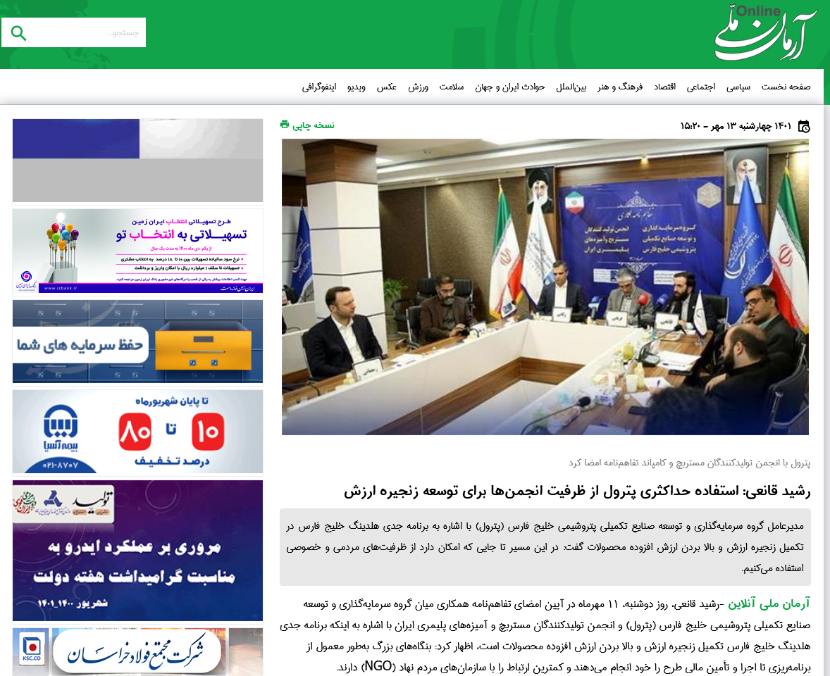 آرمان ملی : رشید قانعی: استفاده حداکثری پترول از ظرفیت انجمنها برای توسعه زنجیره ارزش