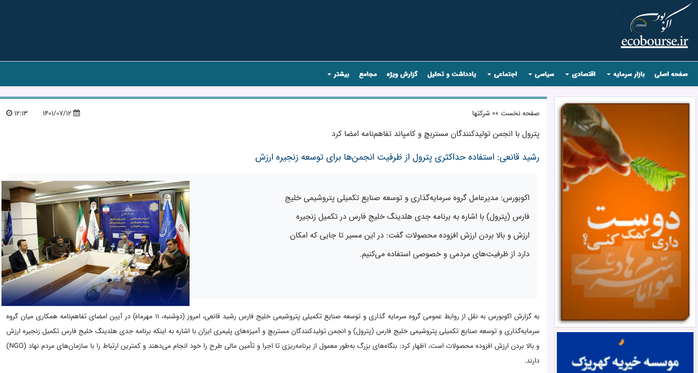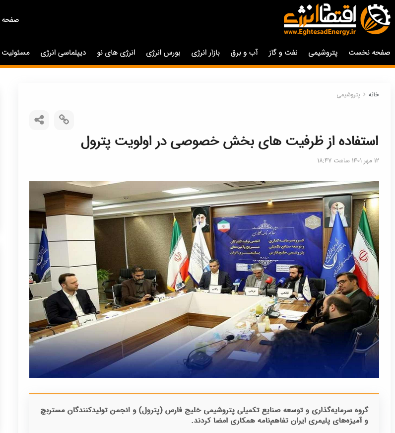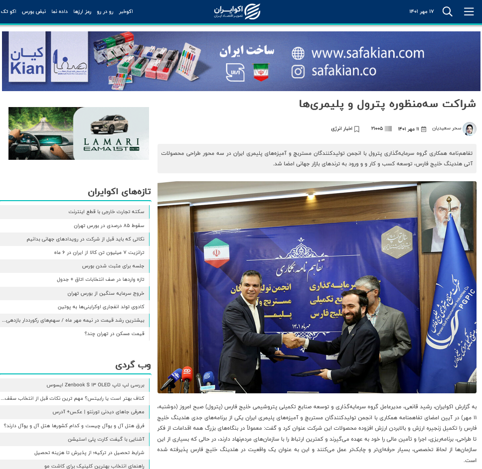 اکو ایران : شراکت سهمنظوره پترول و پلیمریها