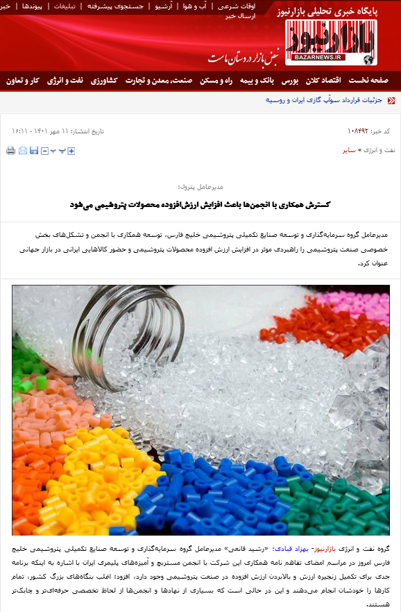 بازار نیوز: گسترش همکاری با انجمن ها باعث افزایش ارزش افزوده محصولات پتروشیمی می شود