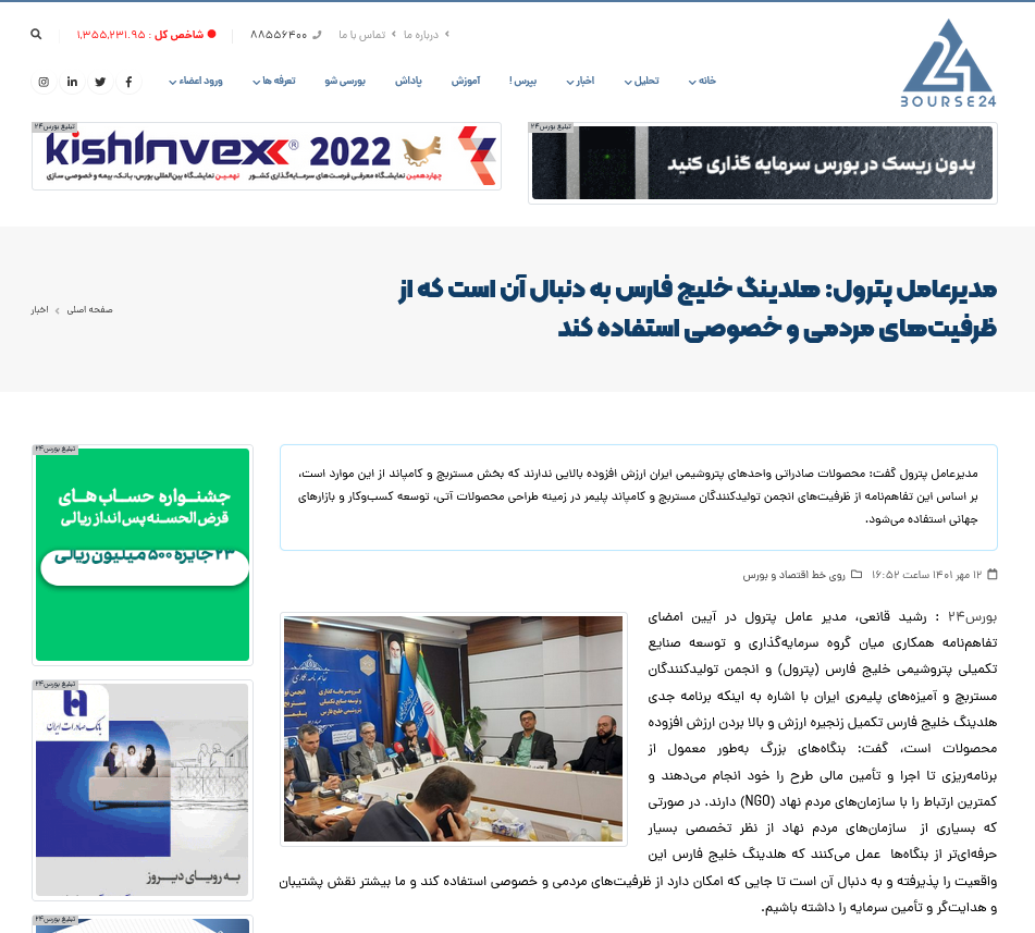 بورس 24 : هلدینگ خلیج فارس به دنبال آن است که از ظرفیت های مردمی و خصوصی استفاده کند