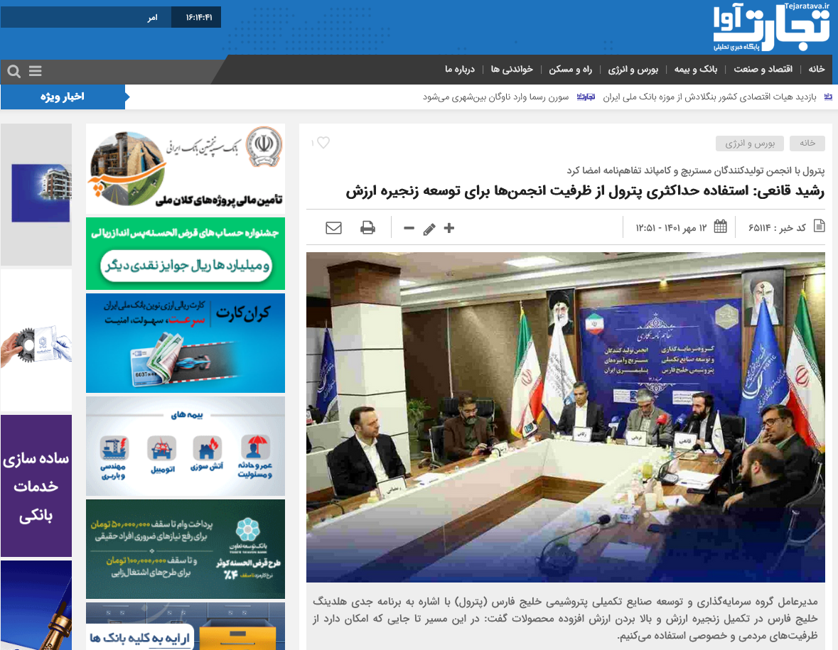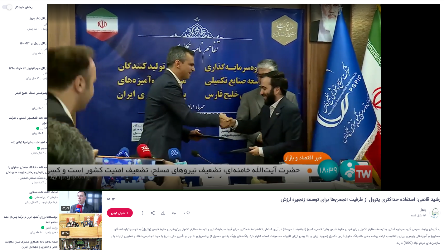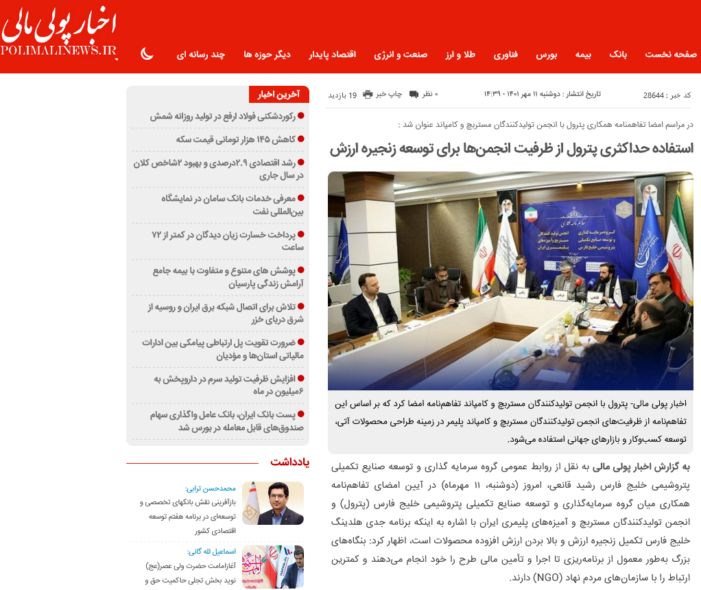 شبکه خبر صدا و سیما جمهوری اسلامی : امضا تفاهم نامه برای ارتقا استاندارهای صنعت پلیمر