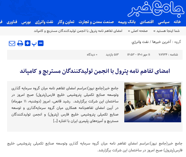 جامع نیوز: امضای تفاهم نامه پترول با انجمن تولیدکنندگان مستربچ و کامپاند
