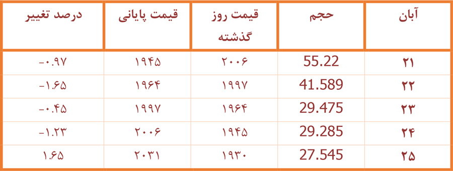 مشاهده اطلاعات قیمتی در هر روز معاملاتی