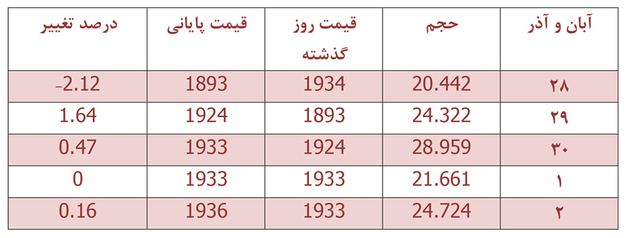 مشاهده اطلاعات قیمتی در هر روز معاملاتی