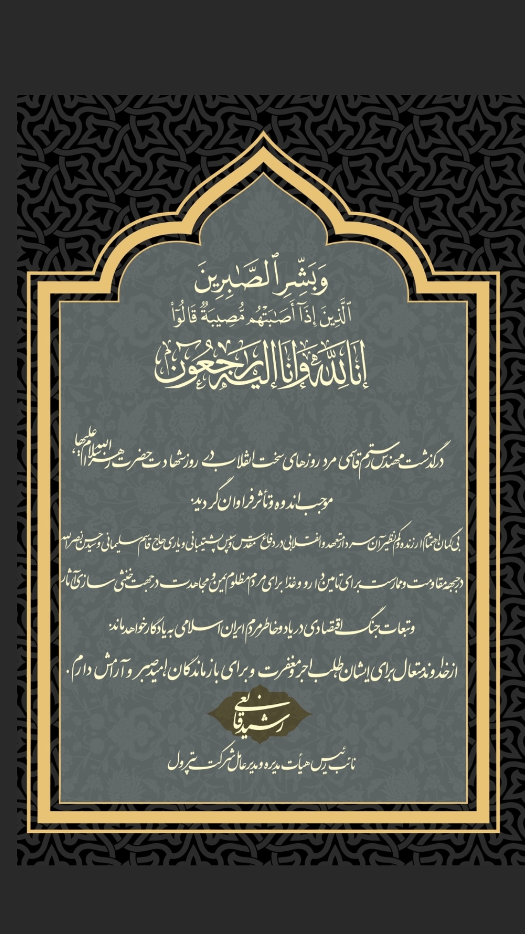 وَبَشِّرِ الصَّابرِینَ الَّذینَ إِذَا أَصَابَتْهُمْ مُصِیبَهٌ قَالُوا إِنَّا لِلَّهِ وَإِنَّا إِلَیْهِ رَاجِعُونَ