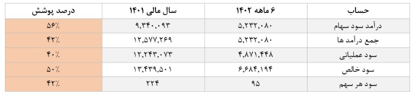 در جدول زیر ، درصد پوشش اقلام سال مالی قبل در مدت 6 ماهه 1402 نشان داده شده است: