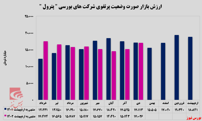 ارزش بازار سرمایهگذاریهای "پترول" در بخش شرکتهای «بورسی» مبلغی بالغبر ۱۷ هزار و ۲۶ میلیارد تومان اعلام شد، که نسبت به بهای تمامشده سرمایهگذاریهای بورسی، رشد یک هزار و ۳۳ درصدی را به همراه داشت.