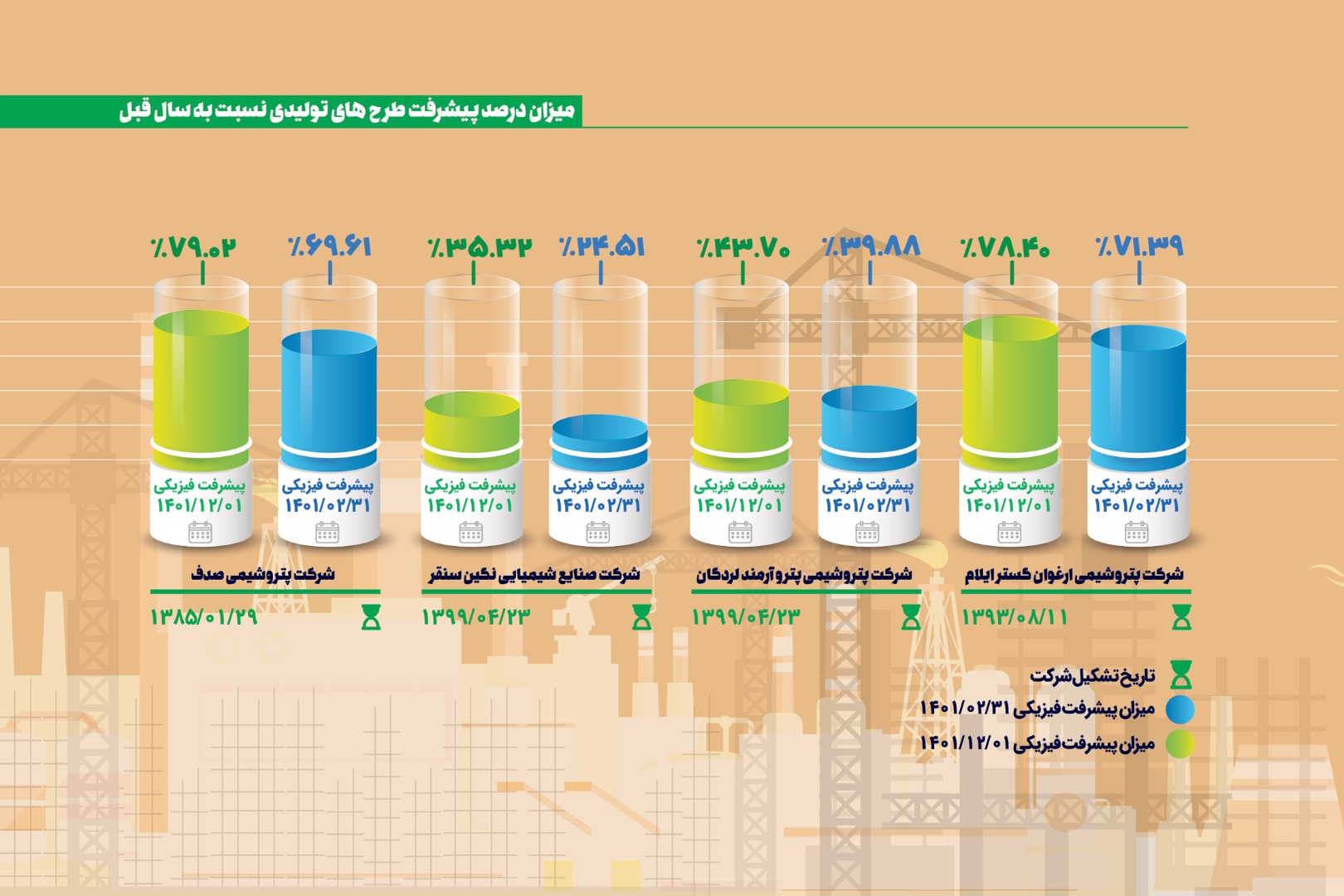 میزان پیشرفت طرح های پترول در سال 1401