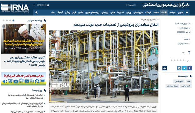 ایرنا: انتفاع سهامداران پتروشیمی از تصمیمات جدید دولت سیزدهم