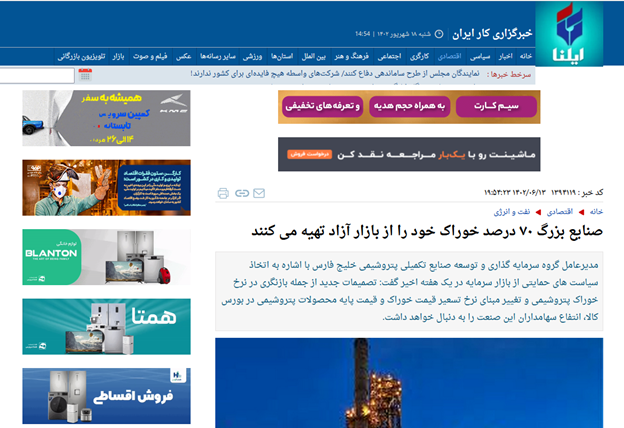 ایلنا: صنایع بزرگ ۷۰ درصد خوراک خود را از بازار آزاد تهیه می کنند