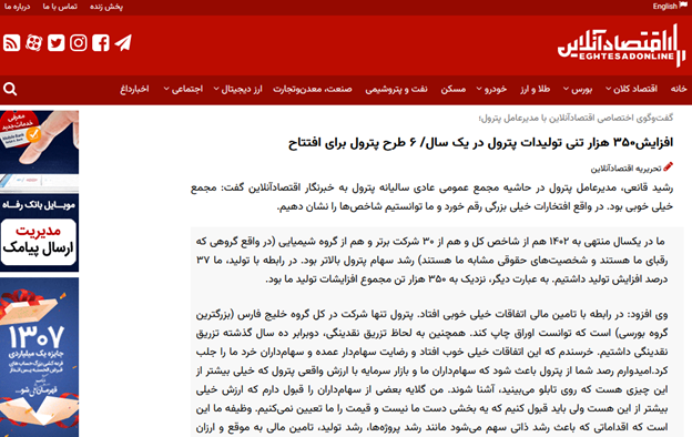 اقتصاد آنلاین: افزایش۳۵۰ هزار تنی تولیدات پترول در یک سال/ ۶ طرح پترول برای افتتاح
