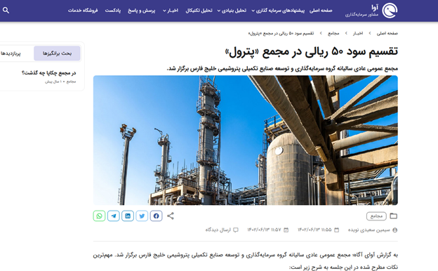 آوای آگاه: تقسیم سود 50 ریالی در مجمع پترول