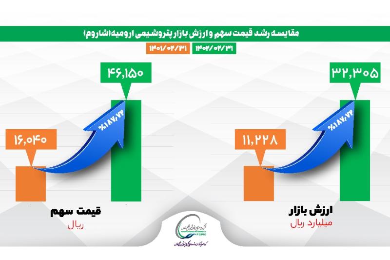 مقایسه رشد قیمت سهم و ارزش بازار شاروم