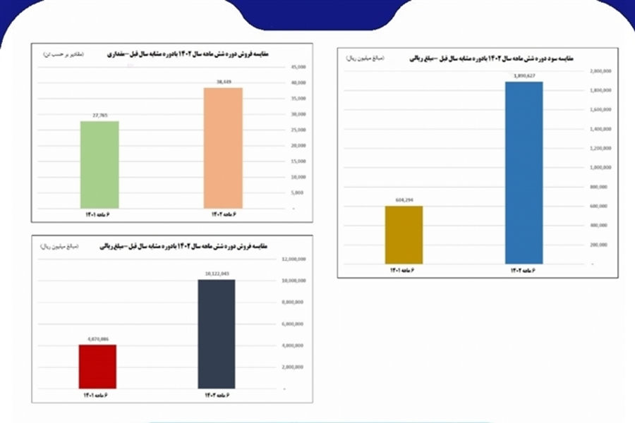 میزان فروش شرکت پتروشیمی ارومیه طبق صورتهای مالی شش ماهه اول سال ۱۴۰۲ در مقایسه با شش ماه مشابه سال قبل به بیش از دو و نیم برابر و میزان فروش وزنی شش ماهه اول سال جاری در مقایسه به مدت مشابه سال قبل به میزان 38درصد رشد داشته است.