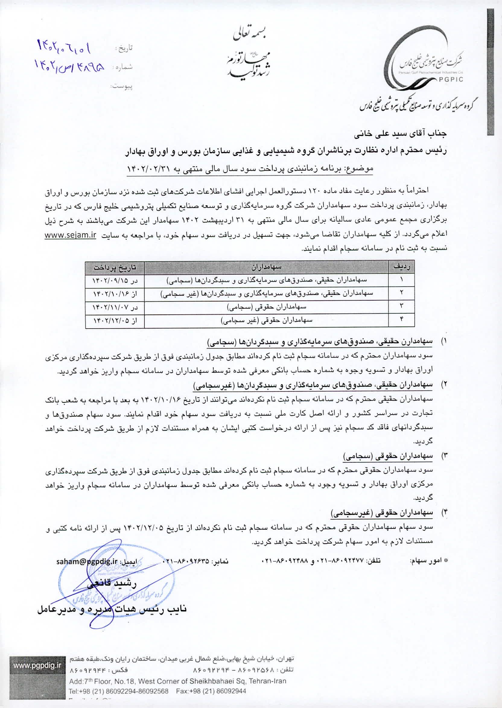 زمان بندی پرداخت سود سهامداران