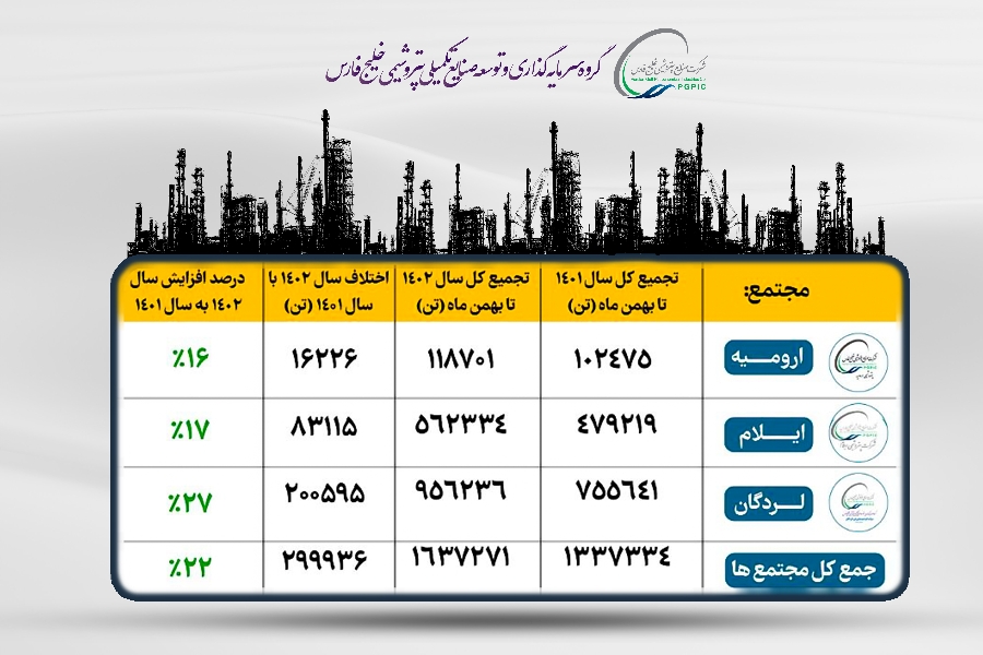 به گزارش روابط عمومی پترول، پتروشیمیهای ارومیه، ایلام و لردگان از زیرمجموعههای پترول، در بهمن ماه موفق شدند تولید خود را نسبت به مدت مشابه سال قبل افزایش دهند.