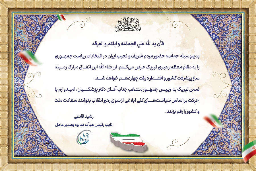 دکتر رشید قانعی، مدیرعامل پترول به رئیس جمهور منتخب دولت چهاردهم تبریک گفت
