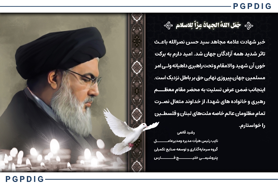 پیام تسلیت دکتر قانعی مدیر عامل پترول در پی شهادت دبیر کل مقاومت اسلامی حزب الله لبنان