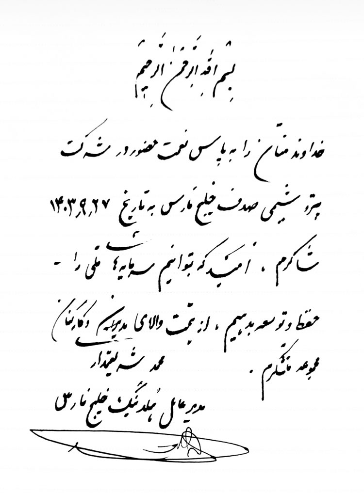 شریعتمداری در پایان از تلاشهای بیوقفه کارکنان پتروشیمی صدف خلیجفارس قدردانی کرد و پیامی در این خصوص به یادگار نوشت.
