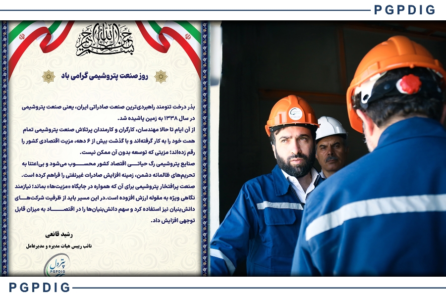 با توجه به اهمیت این عرصه، تاریخ ۸ دی در تقویم با نام صنعت پتروشیمی گره خورده است.این روز را به تمام هموطنان عزیز خصوصا فعالان تلاشگر صنعت پتروشیمی، صمیمانه تبریک میگویم و امیدوارم شاهد شکوفایی بیشتر صنعت پتروشیمی ایران سرافراز باشیم.